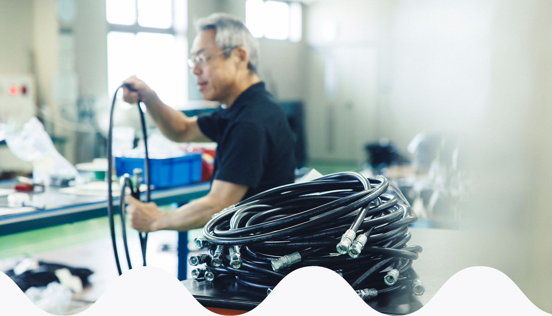 工場では工業用ゴム製品をニーズに合わせ加工・アッセンブリーをしています。