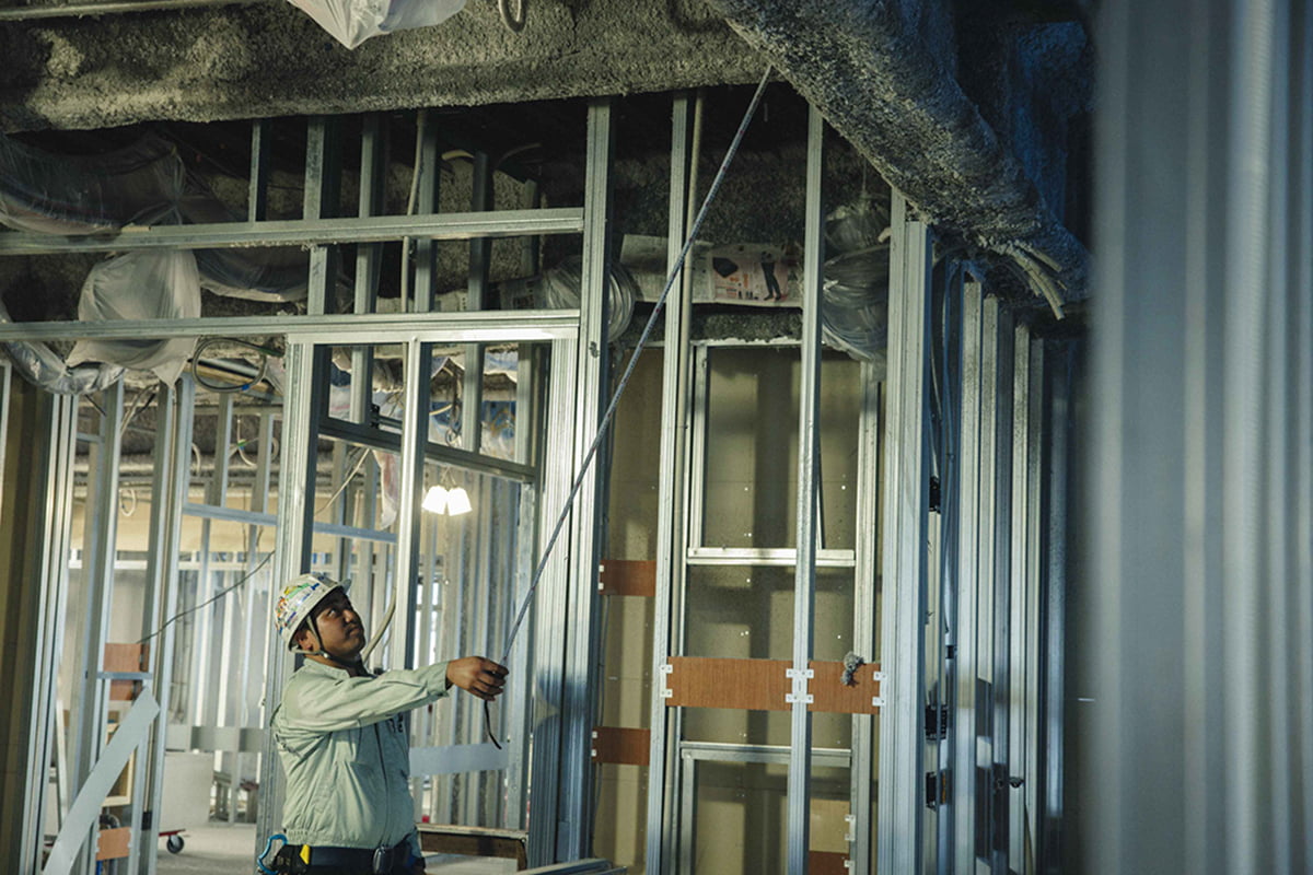 日工では、耐火被覆工事や断熱工事の施工も承っています。主流エリアとなる中国地方を中心に、これまで関西や九州のお客様にも柔軟に対応してきました。ロックウールによる耐火やウレタン吹付による断熱・防吸音などの工事は、オフィスや作業場を快適にする上で欠かせません。ぜひ一度ご相談ください。