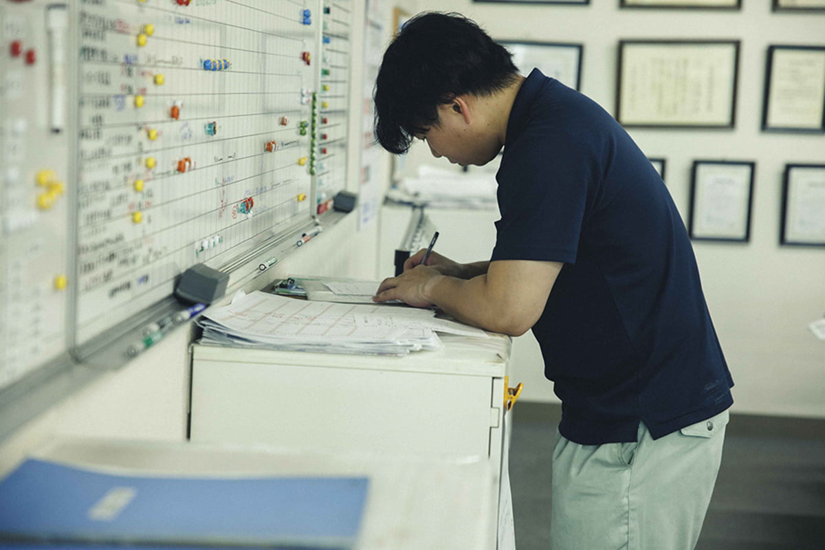 営業部では造船をはじめ、各分野へ工業用製品を提供しています。取り扱う製品はパッキン・ガスケットを中心に、シール材、工業用ゴム製品、高圧ホース、樹脂ホース、断熱材、吸音材、テープ類、接着剤などさまざま。お客様の細かいニーズに応えるため、毎年新たな仕入先も開拓しています。